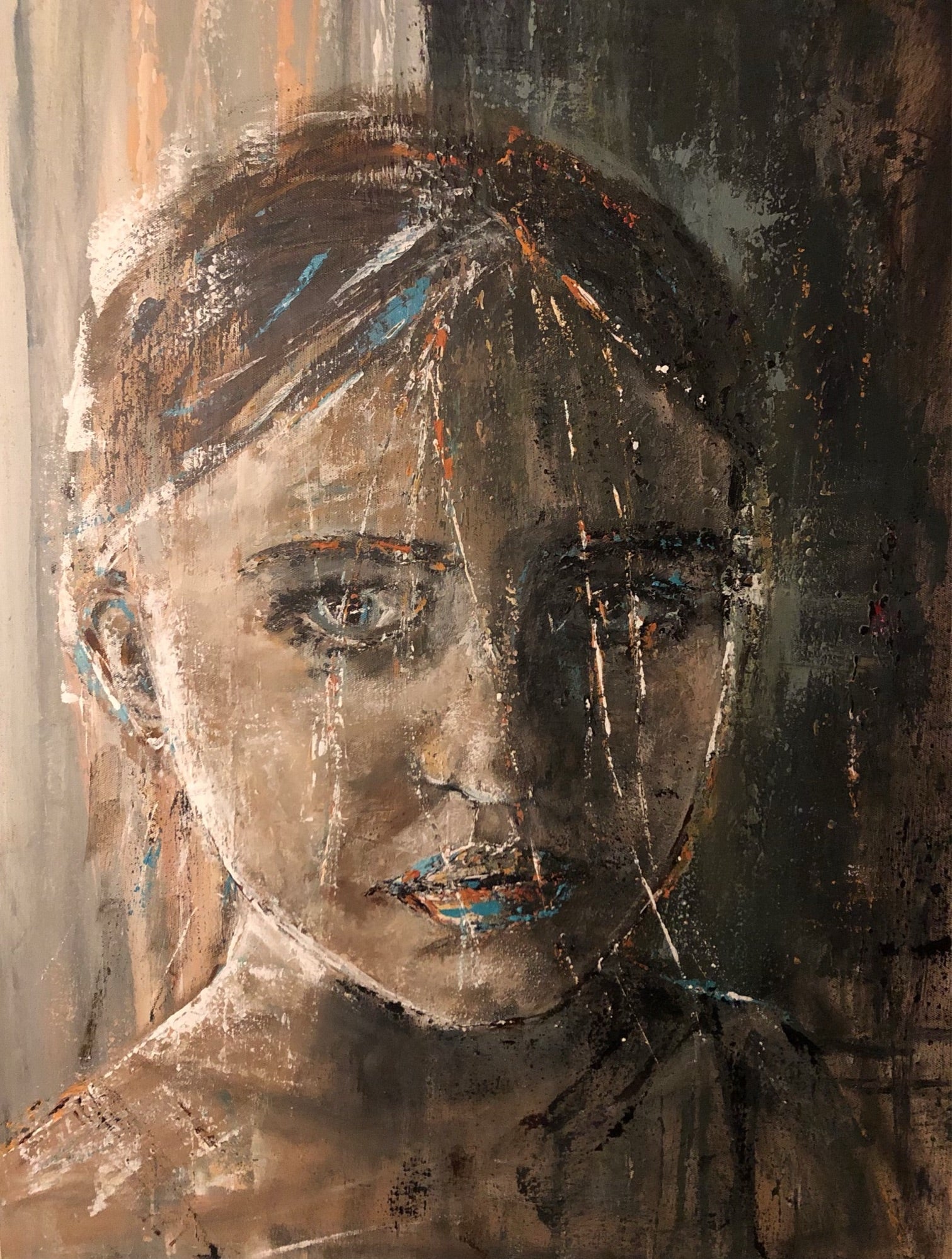 eyes glance softly, intertwining light and shadow in this evocative piece. 80cm x 60cm